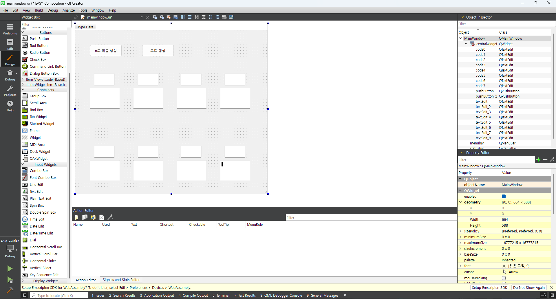 일단 코드를 8개 생성해야 하니 빈칸 8개와 버튼 1개를 만들어 준다