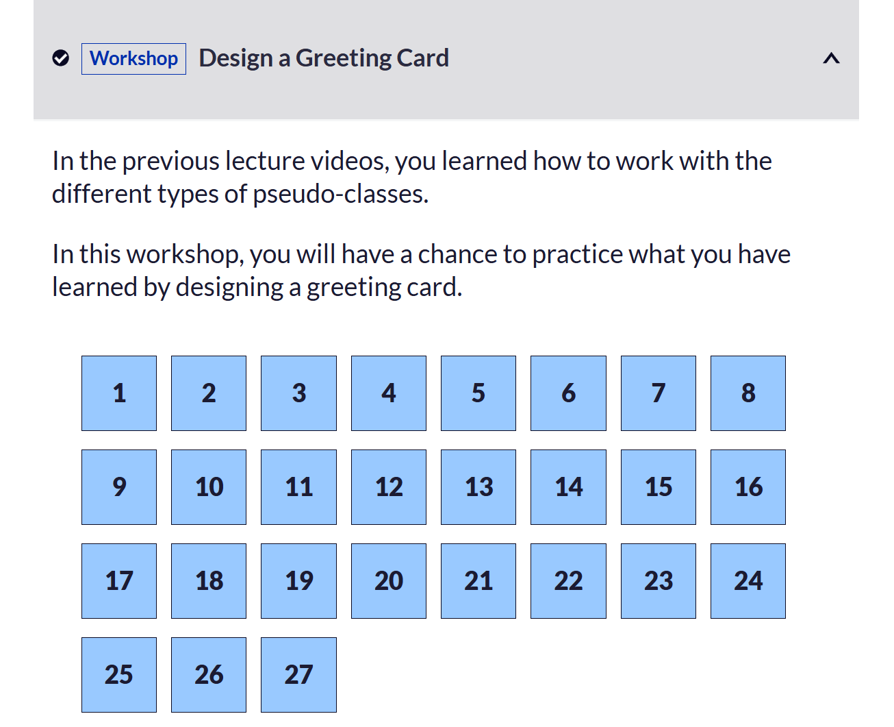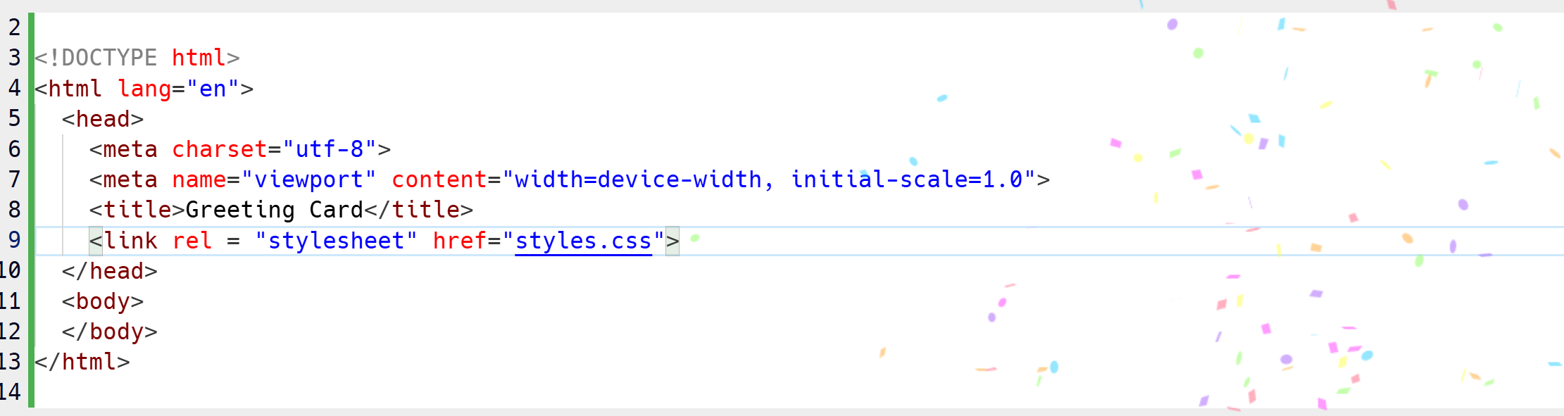 In this workshop, you will practice working with different pseudo-classes and pseudo-elements by designing a greeting card. The HTML boilerplate has been provided for you.