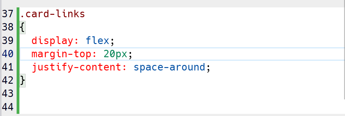 To space the two links so that they have the same space around, add a display property set to flex, and a justify-content set to space-around.