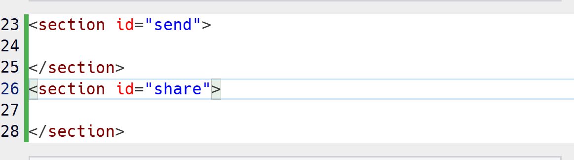 Add two section elements, one after the other. The first should have an id of send, the second one should have an id of share.