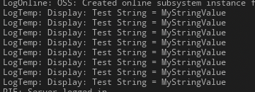 UE_LOG(LogTemp, Display, TEXT("Test String = %s"), *MyString);