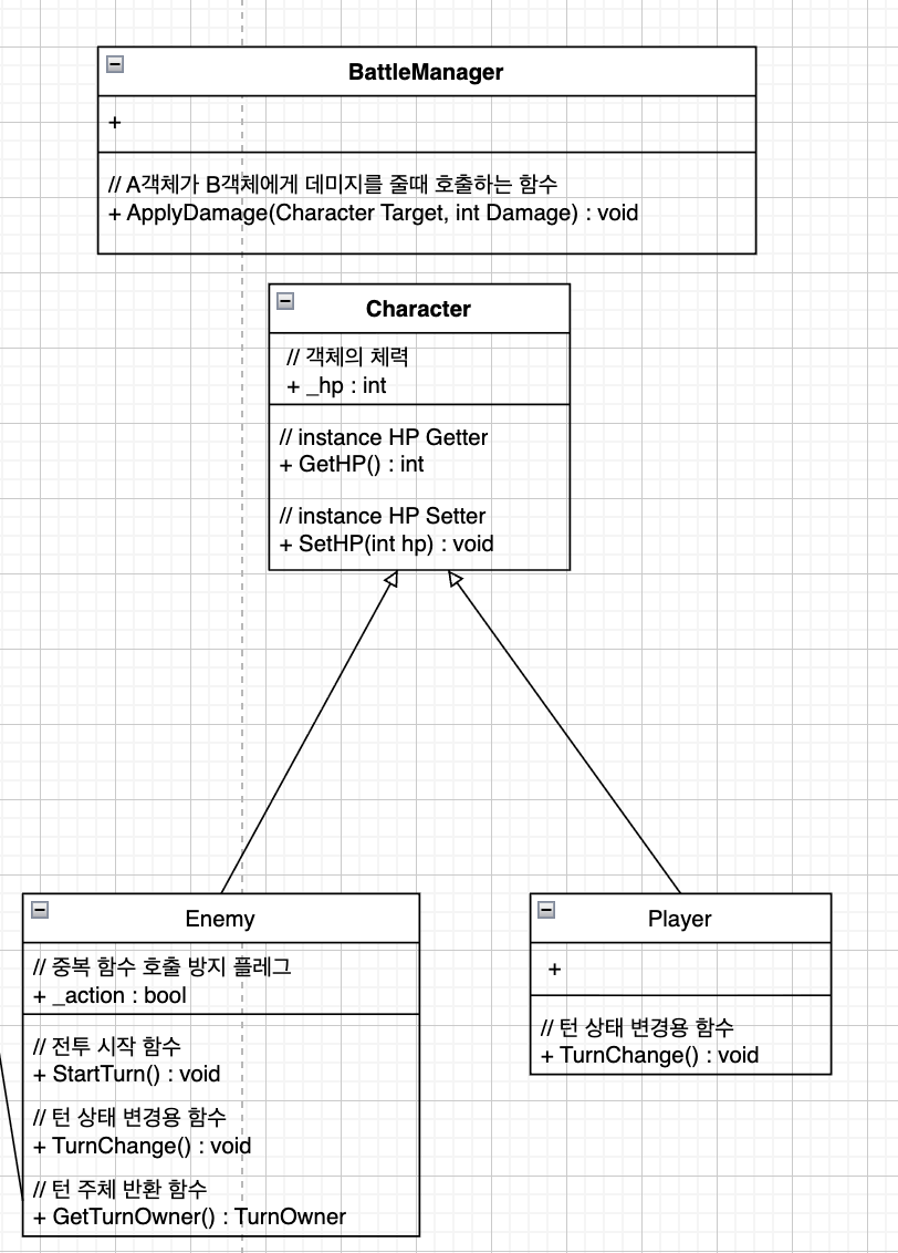 → Character 내부에서 TakeDamage(int amount)로 처리하는 게 안전합니다. - 인덱스로 적 지정