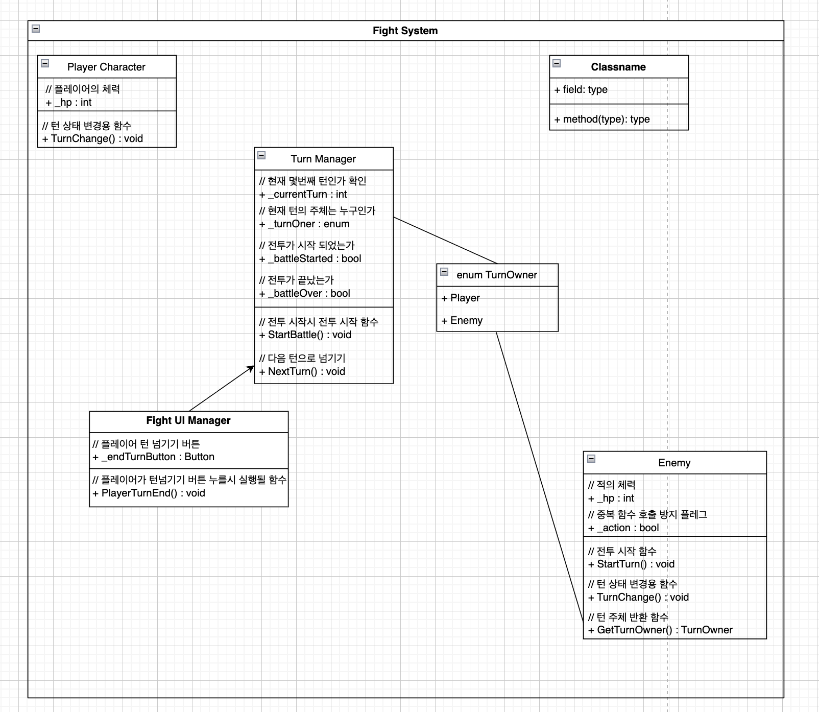 플레이어의 턴에서는 상태를 변경할 수 있는 상태가 되어 여려 변경 사항을 검사하며, 변경 사항에 따라 행동을 정한 뒤 자신의 턴이 오면 그 행동을 하는 형태로 설계 한다