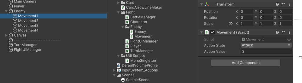 매니저를 추가로 넣어어 전투와 관련된 부분을 처리하도록 하고, 플레이어와 적을 하나의 부모를 가지도록 변경한다