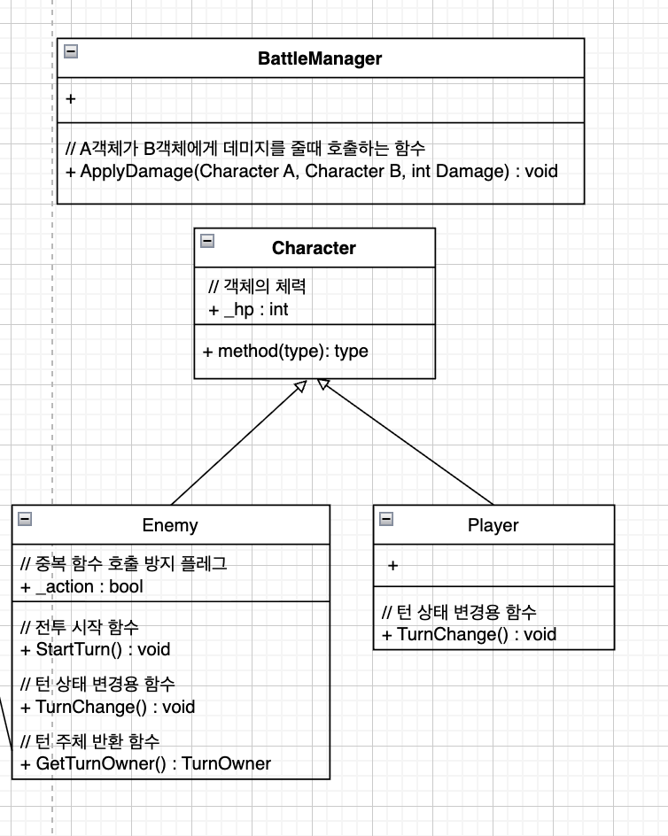 → Character 참조 자체를 파라미터로 받는 게 유연합니다. - 플레이어/적 분리