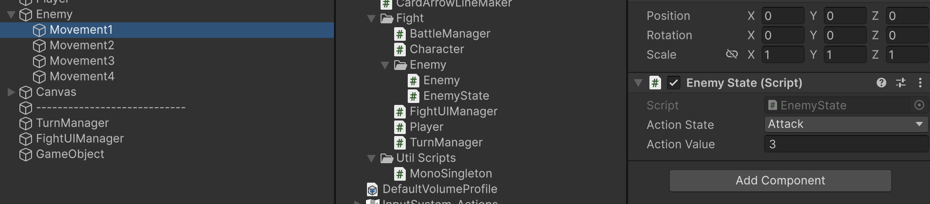 원래는 이렇게 enum으로 행동을 결정하고 gameobject를 결정하는 형태로 개발을 했는데, 이를 FSM에 맞게 수정하려 한다