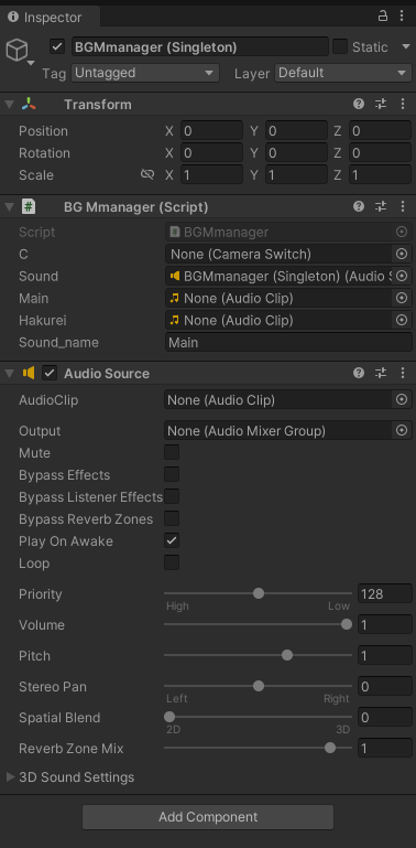우선 하쿠레이 신사 진입시 BGM을 구현해 주려한다