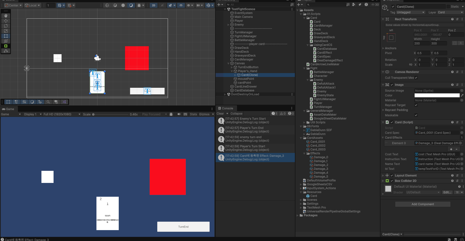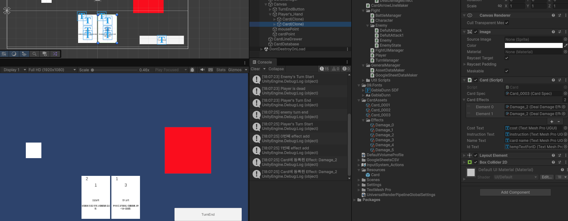 이제 카드를 사용시 해당 effectlist를 순회해서 처리하도록 하면 된다