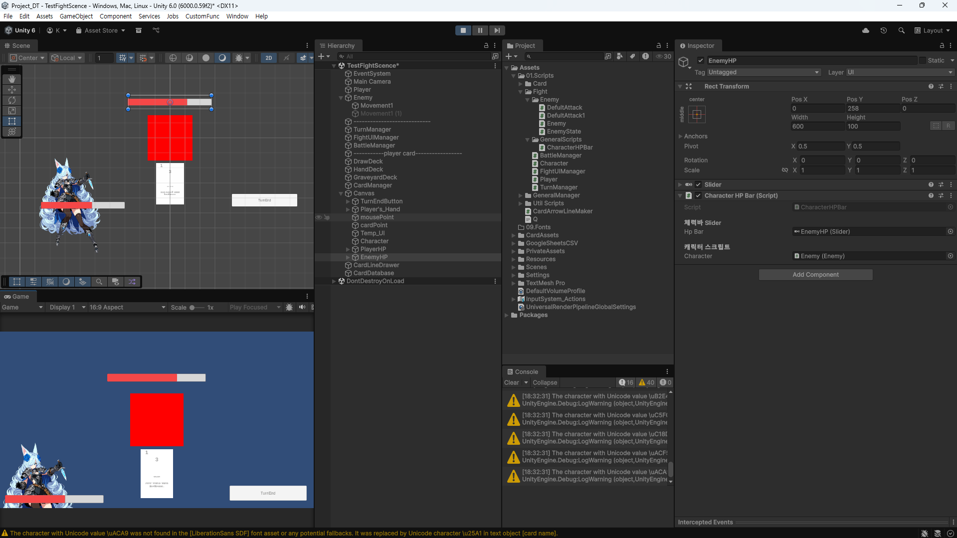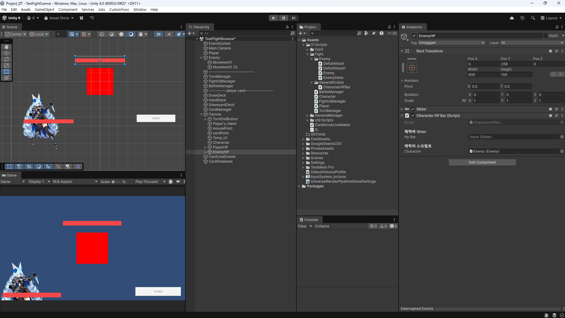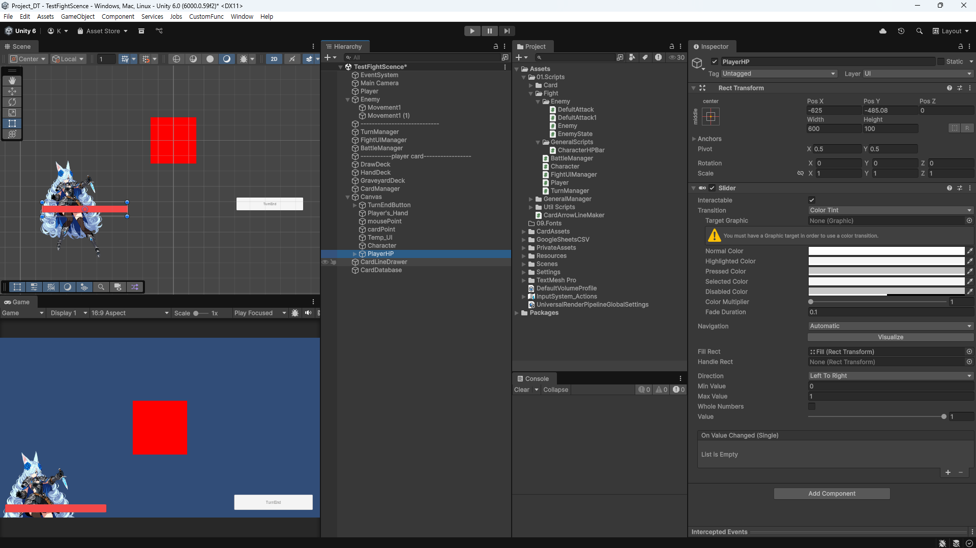 이제 여기에 slider를 이용하여 플레이어, 적의 체력을 보여줄 체력바를 만들려 한다