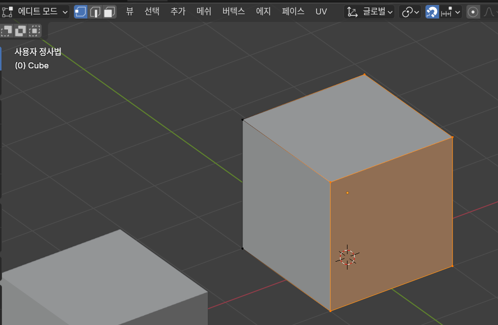 에디트 모드에서 오브젝트를 볼 시 이렇게 선택한 오브젝트의 꼭짓점에 포커스가 잡히는걸 볼 수 있다