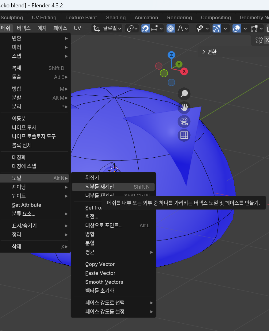 메쉬 - 노멀 - 외부를 재계산