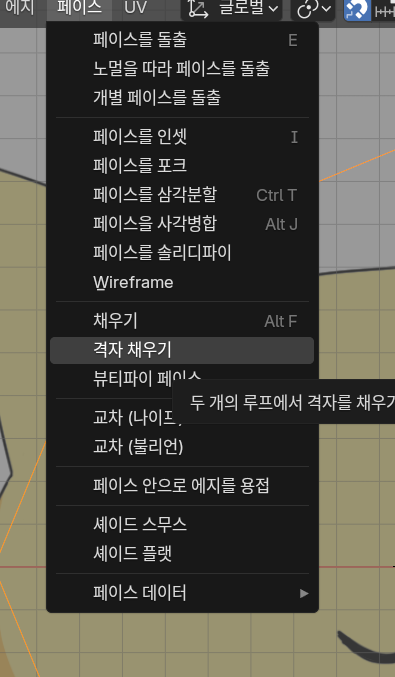 여기에 페이스 - 격자 채우기를 선택시 안쪽이 채워지게 된다