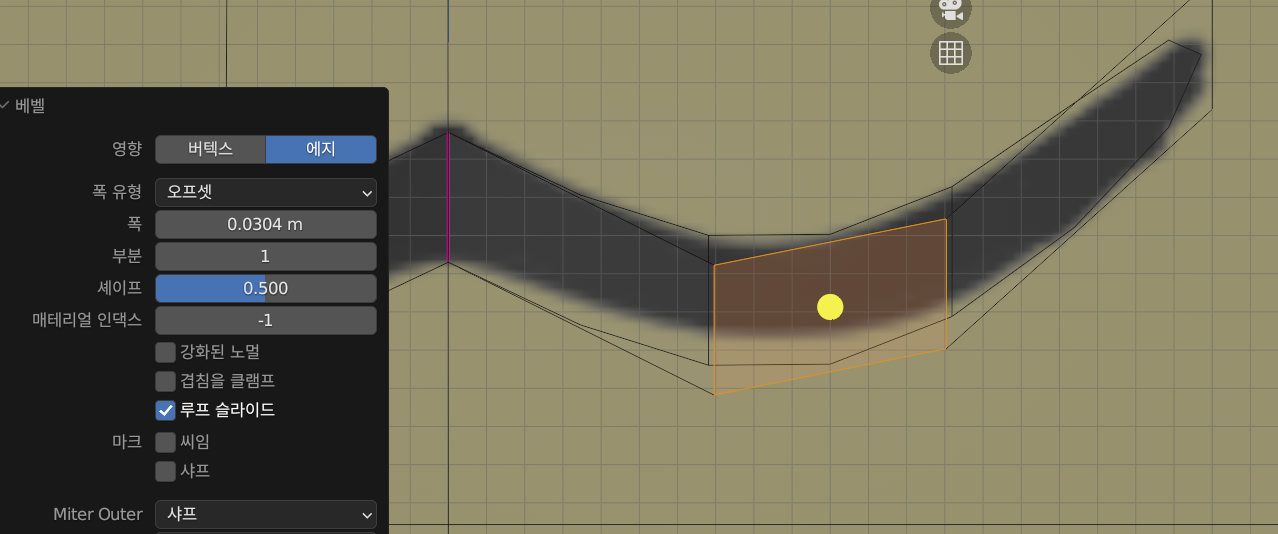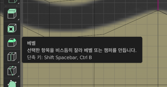 베벨 = 각을 둥글게 만들거나 에지를 늘릴 수 있음