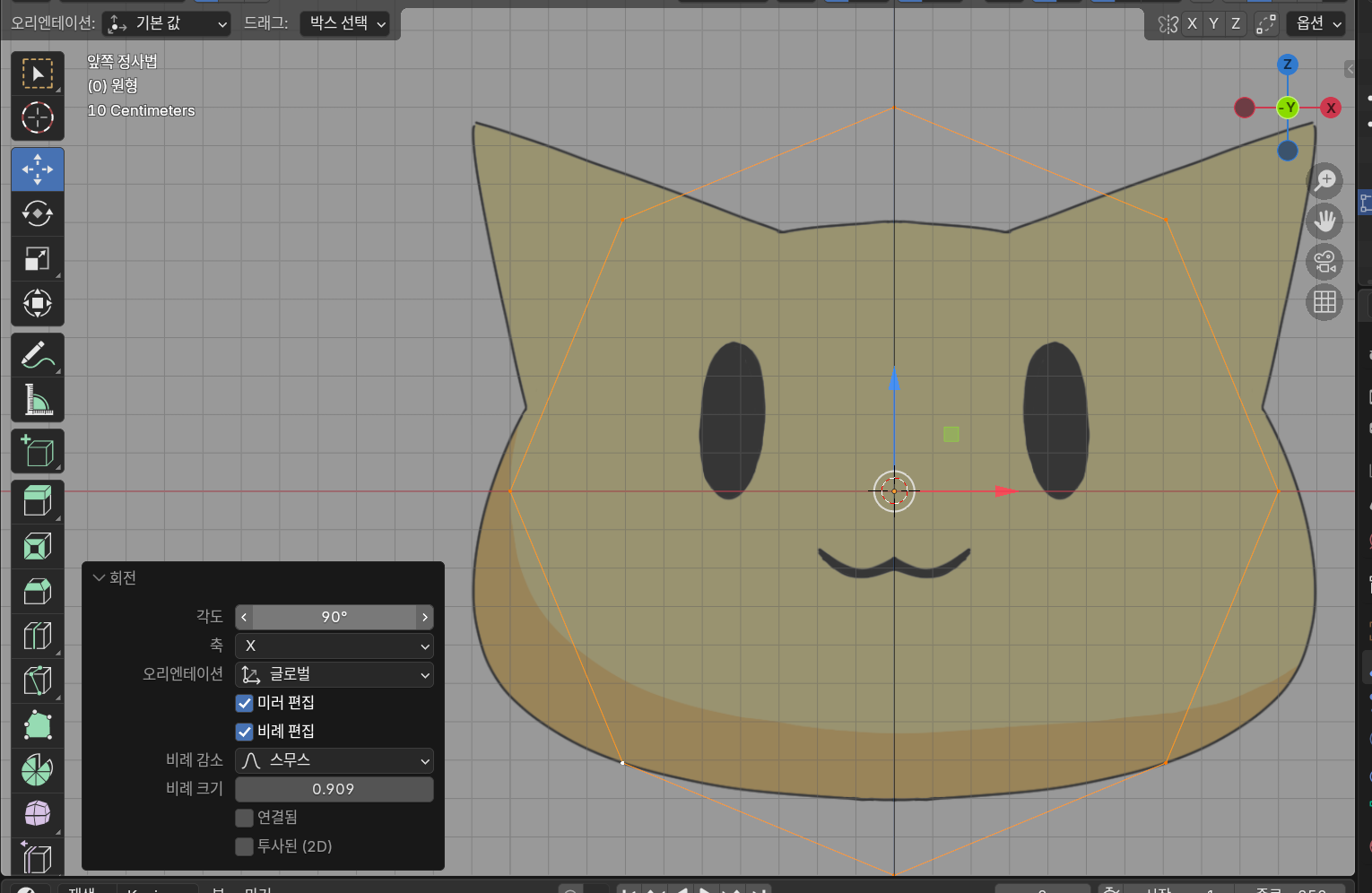 이때 비례 편집 기능을 사용함