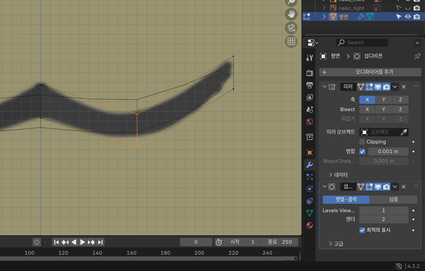 모디파이어의 섭디비전 표면 기능을 사용